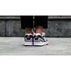 Nike’s minimalistic grey, black, and white design is highlighted by vibrant red detailing. Step up your sneaker style game by co-ordinating your outfit with your Air Span II kicks and pair them with a vintage red Nike Crew Neck Sweatshirt.