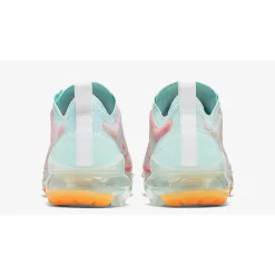 Nike air branding is framed with stitch detailing on the tongue of this VaporMax with the signature Swoosh located on the side panels outlined in a bright orange tone. Added VaporMax branding contours the mint coloured heel, overlayed on a white heel tab for ease of use.
