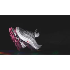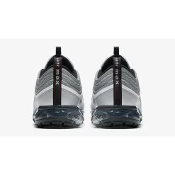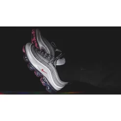 Just like the original ‘Silver Bullet’, hits of vibrant red are stamped to the sidewall Swoosh as well as the tongue branding. A contemporary contrast comes in the form of a crystal clear Vapormax Unit which propels each stride with weightless energy.
