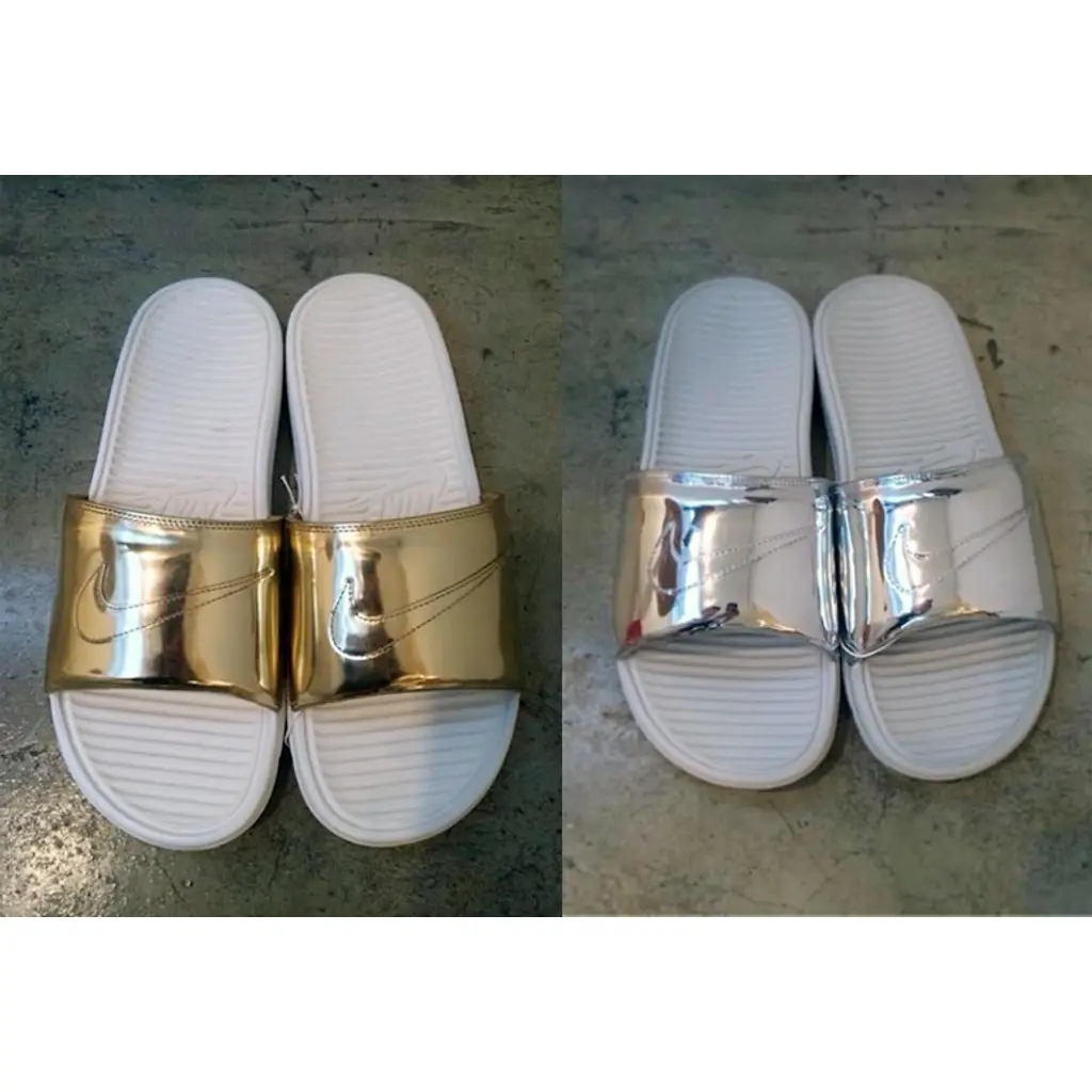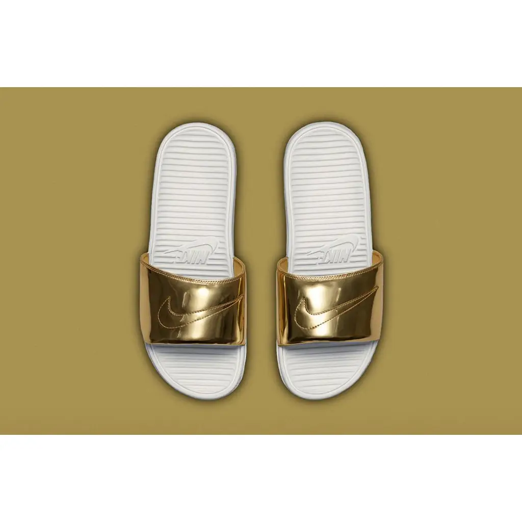 The Nike Benassi Solarsoft Slide SP Liquid Gold will have limited availability in the following retailers starting August 14 at 9am via NikeLAB