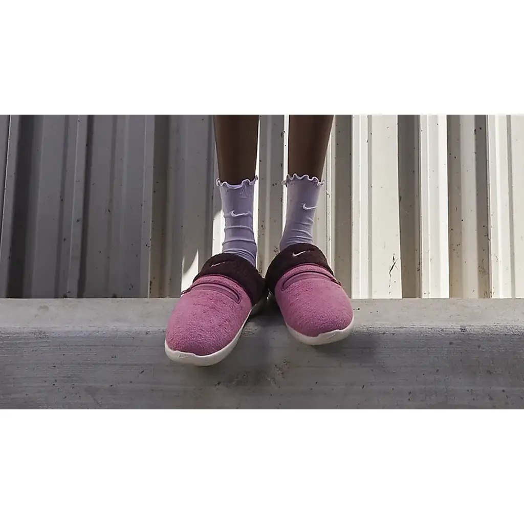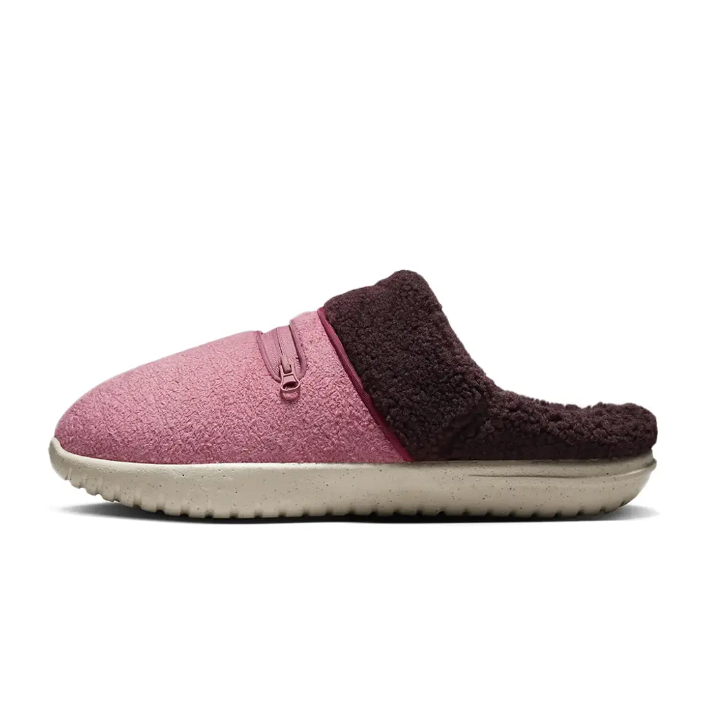 Lounge in style with the Nike Burrow Slipper Desert Berry! This ultra-comfortable pair is decked in a two-toned colourway, with the forefoot in berry pink while the rear is in rich brown. Both the inner and outer portions are outfitted in a soft fleece material that feels warm against the skin. Adding to its cosy feel is the marshmallow-like foam midsole which offers ample support. Finally, this Nike Burrow Slipper finishes with an outsole designed with a unique pattern for extra traction.