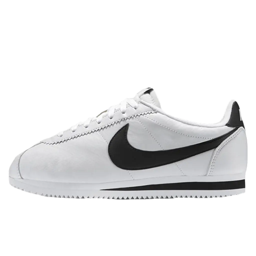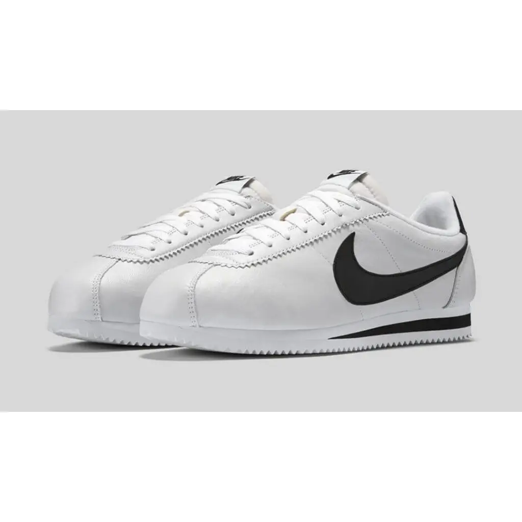 This edition of the Classic Cortez is highlighted in the same black and white combined colourway as the black edition but in an opposite manner. The pair features a premium leather upper in white with a foam tongue with contrasting dark Swoosh logo branding in the sides. It sits on top of a full-length EVA foam midsole in white with black detailing in the rear end. The midsole adds a thick layer of padding for extra comfort. There is additional Nike branding on the tongue and back heel region and the pair is finished off with a herringbone pattern molded rubber outsole.
