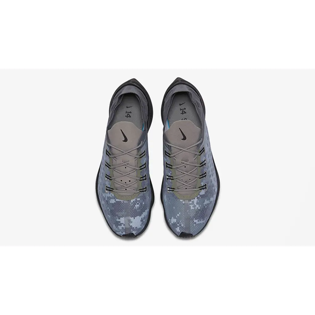 Following one of 2018’s most popular sneaker trends, the EXP-X14 Dark Stucco features a translucent upper. A tapered heel and a Flywire lacing system provide wearers with the optimum fit, while a Nike Zoom Vaporfly 4% inspired profile makes this sneaker the perfect pair to rock both on the street and on the track.