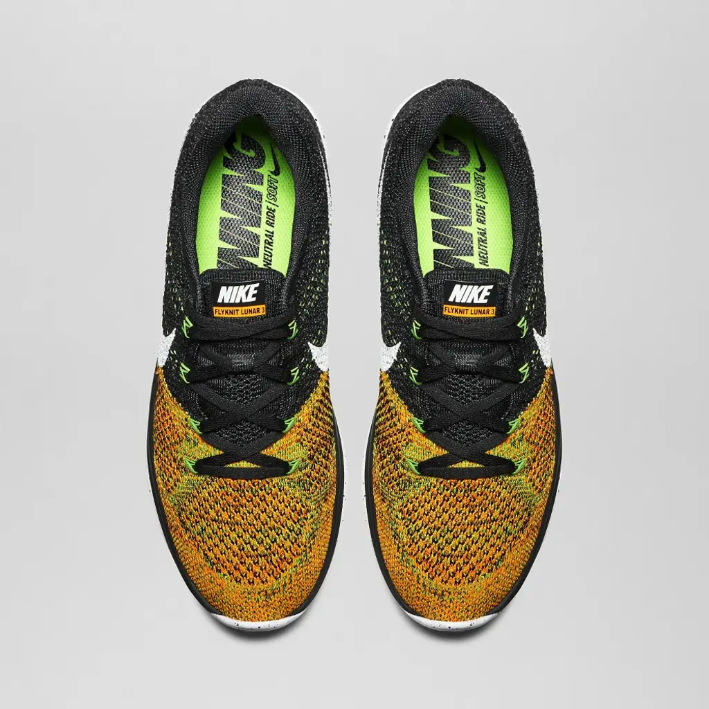 The Nike Flyknit Lunar 3 is one of the new colourways from the upcoming Nike Flyknit Lunar 3 Pack. This pair is dressed in a dazzling Black, White, Gold and Green fused colourway.