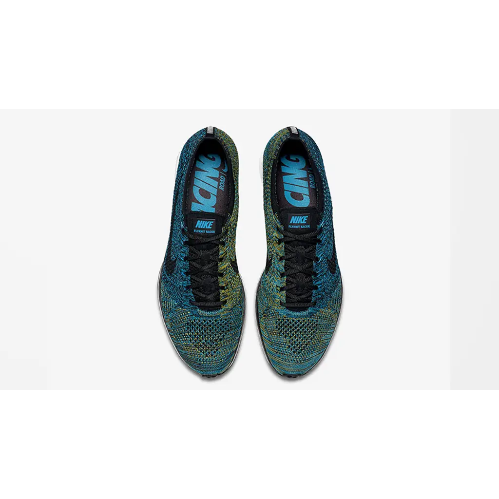 Get ready for the Nike Flyknit Racer Blue Glow as this silhouette is scheduled to hit shelves soon. While we’ve seen several high profile colourways in the last year, few have been more eye-catching than this pair. A fused theme of green and blue instantly grabs attention, making this a must-have for any sneakerhead who likes to stand out.