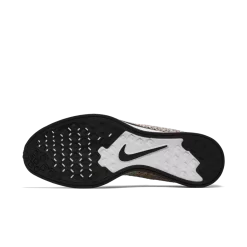The shoe features an attractive multicoloured one-piece Flyknit upper. There are bold hints of black visible on the collar, tongue and Swooshes. There is branding on the tongue and insole region. The pair sits on top of a clean white midsole and is finished off with a dark outsole unit.