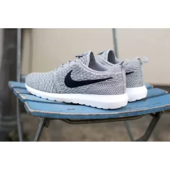 This pair features a woven light charcoal base with dark obsidian swooshes. It also offers a white natural motion sole cap with wolf-grey underlays. These fantastic combination gives this pair the functionality as well as versatility which is needed to place it into the everyday wear category. This hybrid pair is finished with a white out-sole.