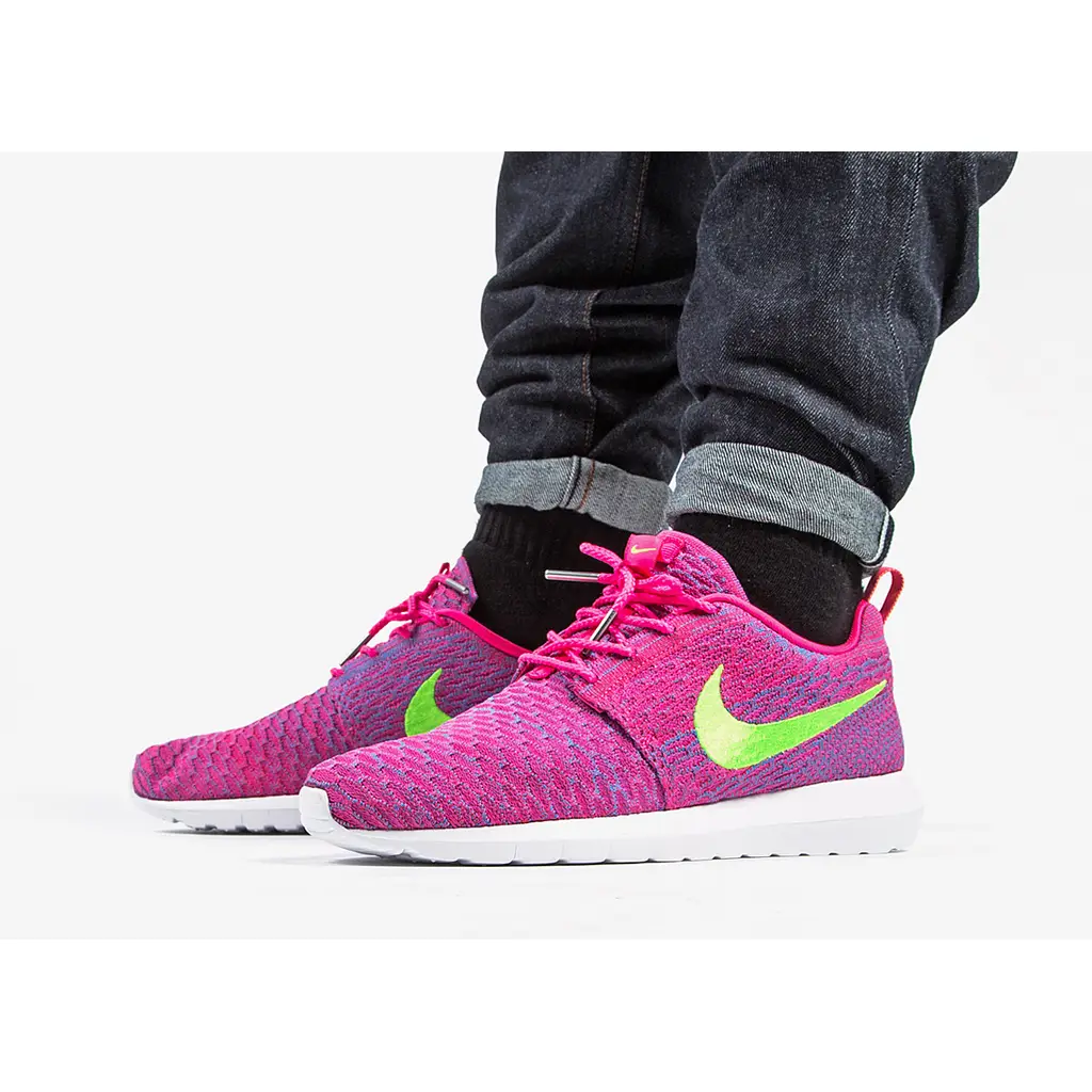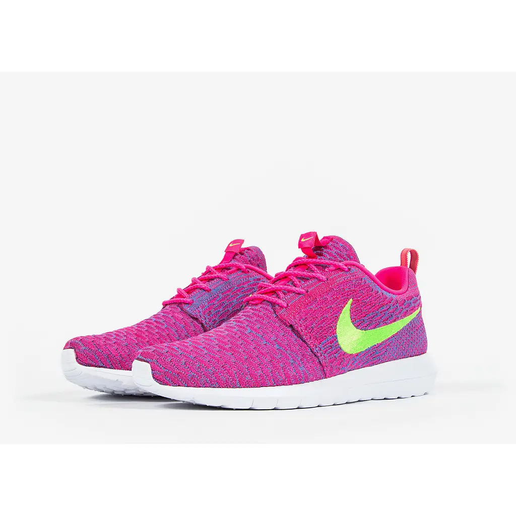 The Nike Flyknit Roshe Run Pink Flash Lime is surely one of the best pair of Roshe Runs from upcoming Roshe Run Pack. This attractive looking pair is dressed in a Pink and Volt fused colourway.