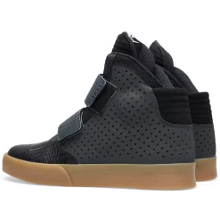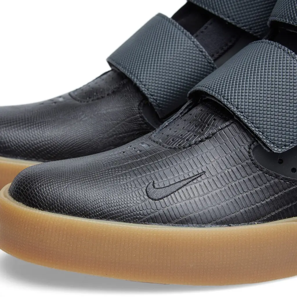 This pair of Nike Flystepper is crafted using textured and perforated black leather panels. It includes a black mid-sole unit and sits on top of a vulcanized sole. The pair also features metal AF1 lace lock system for a better fit. The shoe is finished with a gum out-sole unit.