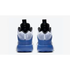 The brand-new Jordan 35 is the model of choice here, releasing alongside the Jordan 3 and the Jordan Cadence as the other silhouettes in this collaborative pack. The futuristic Fragment Design x Air Jordan 35 is crafted from a whole range of fabrics including leather, technical mesh and supple suede. Leather overlays in black and blue complement plenty of branding, including stitching at the heel tab, the brand’s signature lightning bolt logos, Jumpman branding and other Jordan x Fragment bold logos.