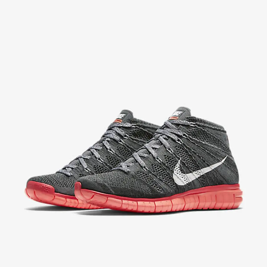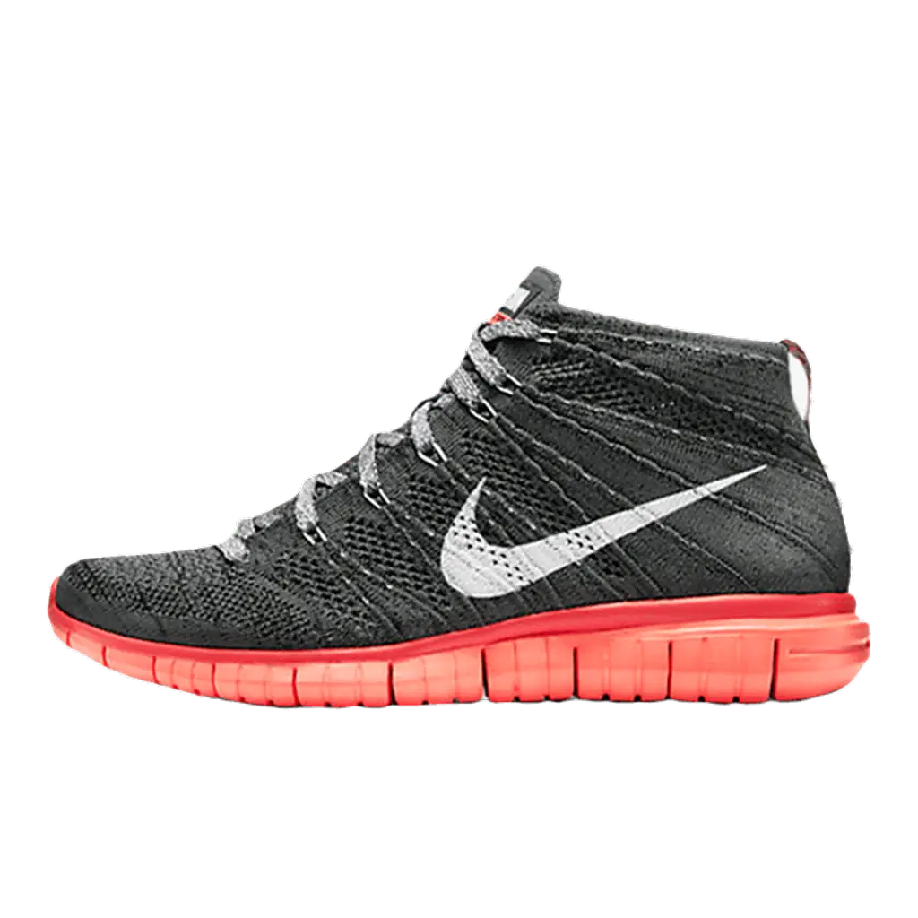 The Nike Free Flyknit Chukka Dark Grey Hot Lava is a fresh new colourway for one of last years most celebrated sneaker releases. The pair is dressed in an eye-catching combination of dark grey, black, hot lava and white colourway.