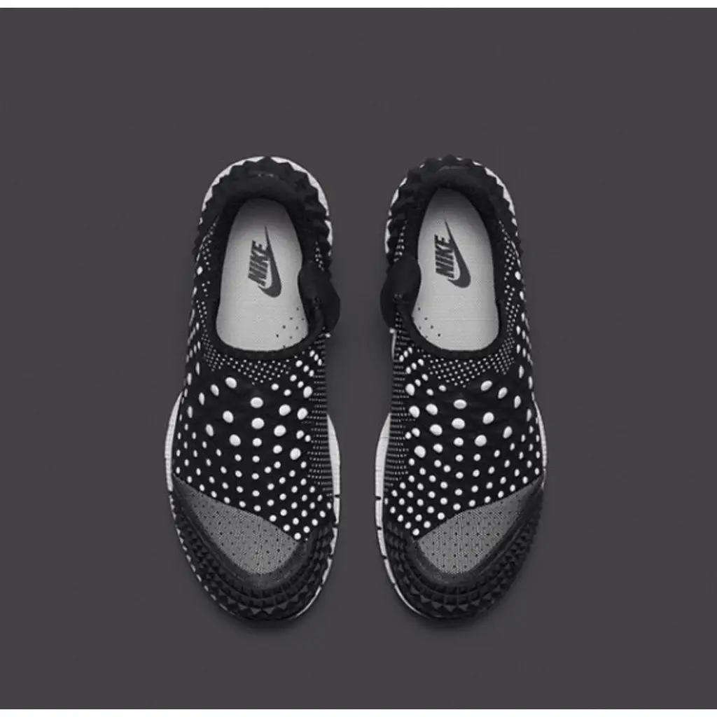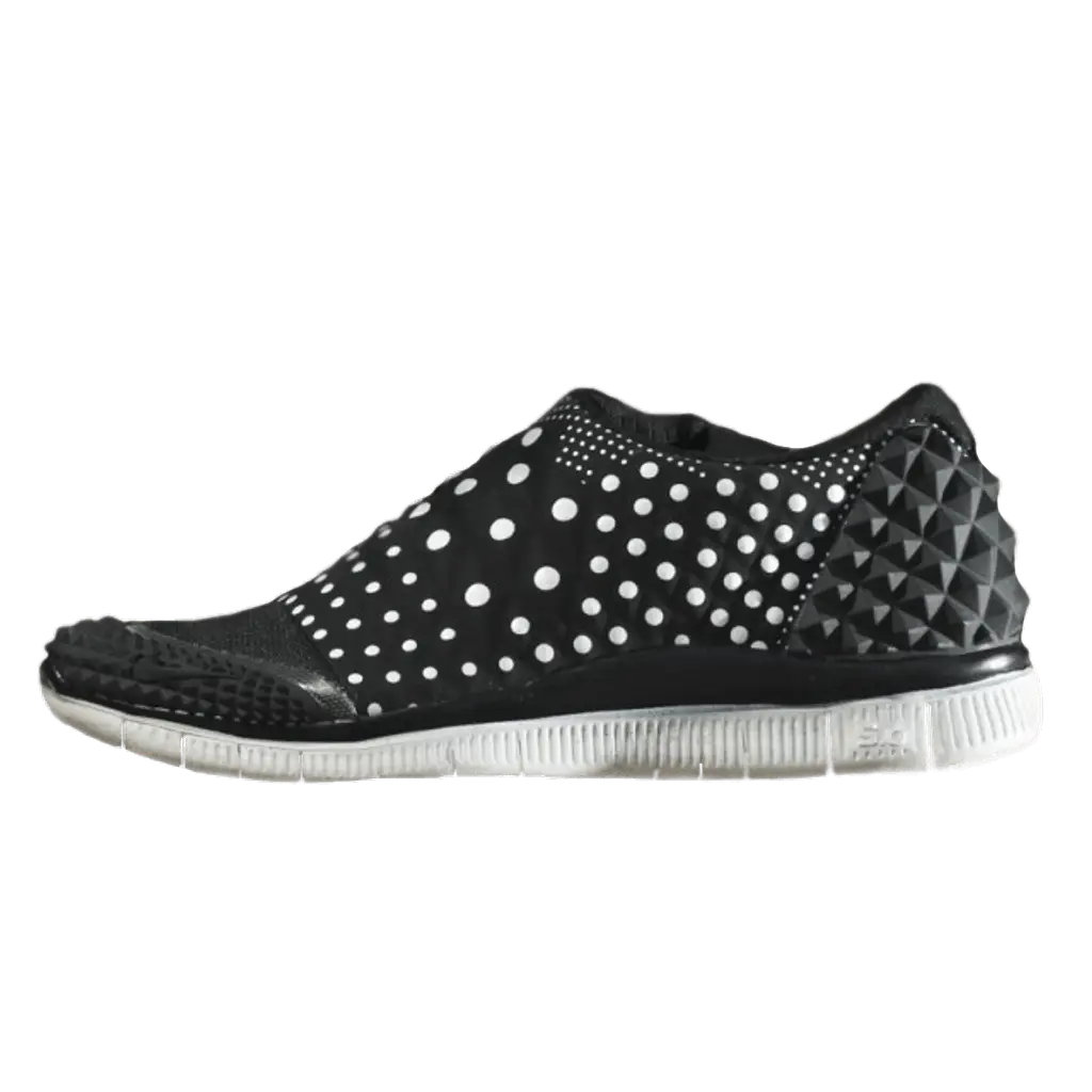 The design is very similar to the previous release but gets a slightly different look with a white dotted pattern against an all black upper. It sits on an ultra adaptable Free 5.0 Sole which provides a natural and comfortable fit. The shoes are also constructed with an asymmetrical design and raised geometric upper. Finally, for all those lazy sneakerheads, a side zip allows a faster and simpler way to get your shoes on and off.