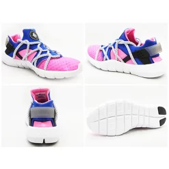 The pair features a Blue and Pink fused upper with a Pink ventilated mesh toe-box. It features the ultra-modern natural motion outsole unit. It also includes a White rope lacing system. The pair includes Nike Huarache branding on the tongue and on the transparent back-end of the heel cage. The shoe is finished off with a White sole unit.