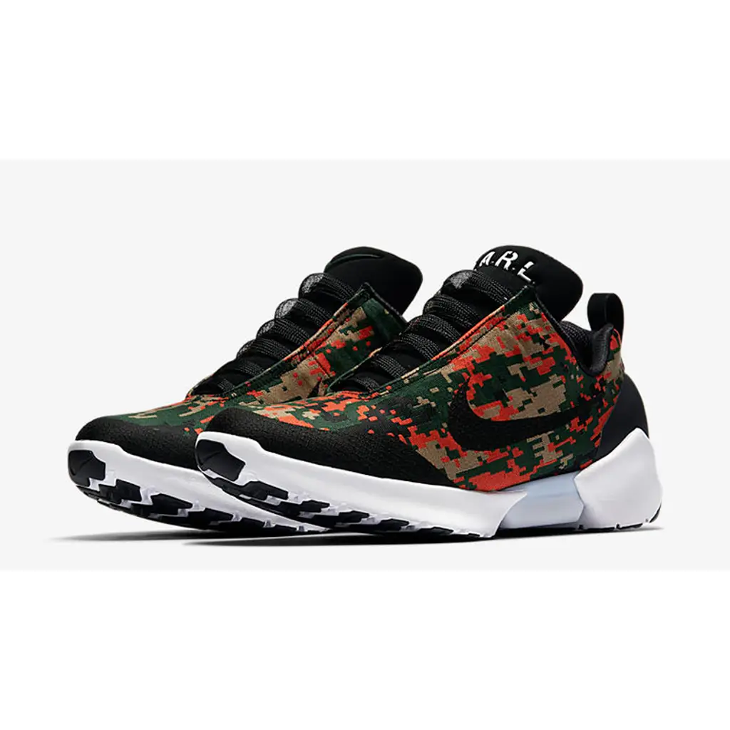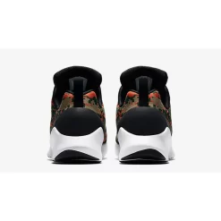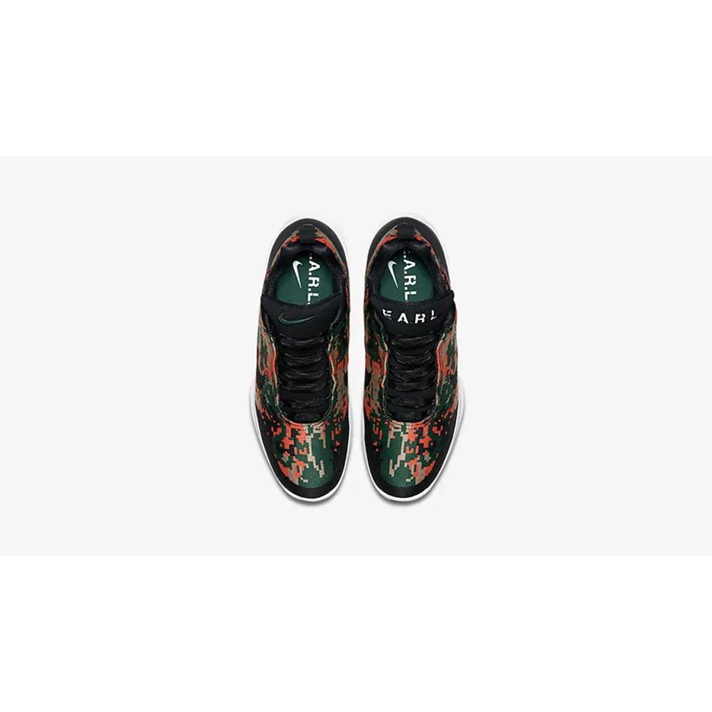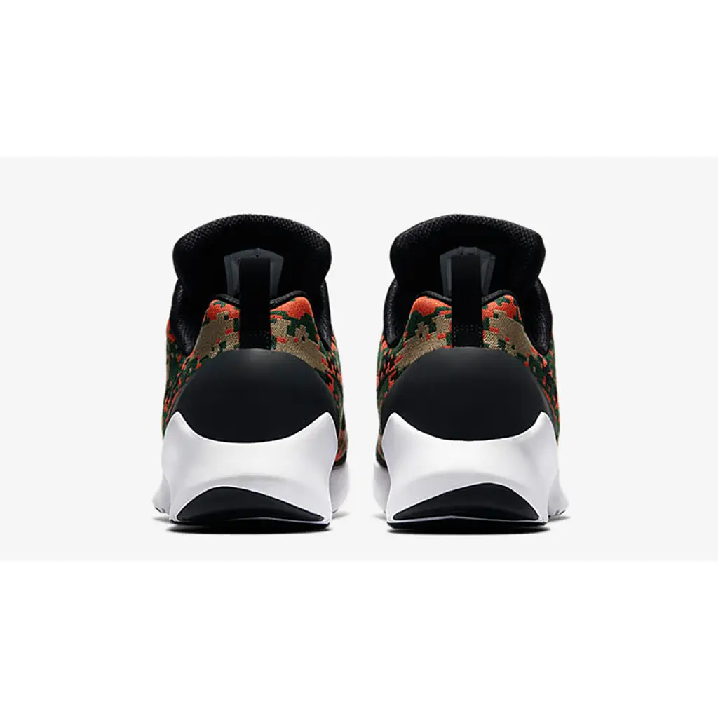 A chunky and robust white midsole features underfoot. It manages to balance that camo orange upper which showcases a digi pattern along with a conventional Nike Swoosh.
