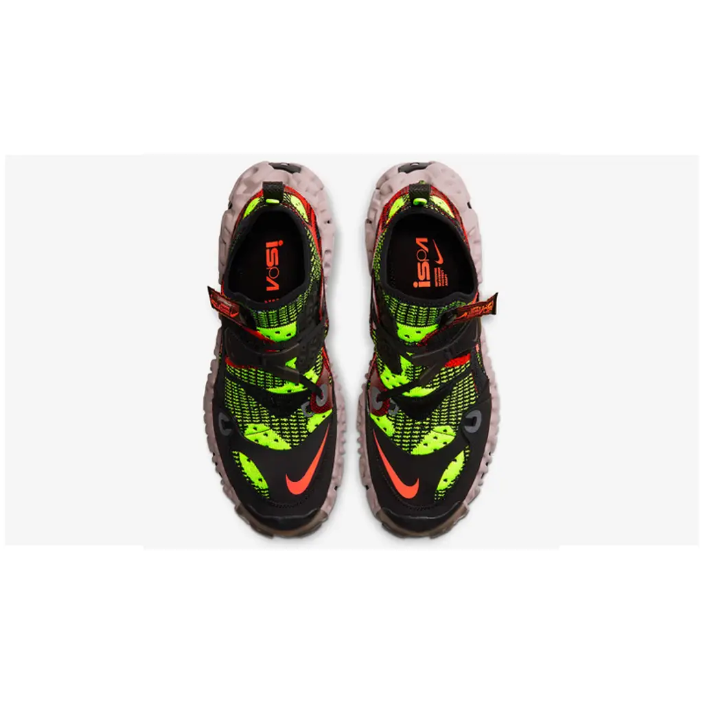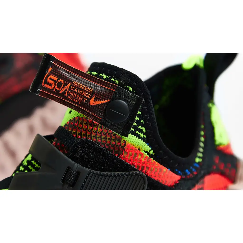 Crafted from Flyknit fabrics, the uppers take on a black, neon and vibrant orange colorway, with the streamlined shape of the pair showcasing high-tech details such as the unique closure system and pull tabs at both the front and rear. ISPA branding is featured at the tongue, while Swoosh branding runs across the toe box.