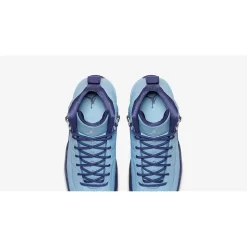 Now we have another eye-catching design to look forward to. It all starts with the baby blue colourway across the leather crafted upper. You’ll notice all those signature details throughout including the customary AJ12 stitched stripes which run from the lower half to the ankle surround.