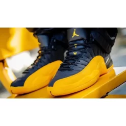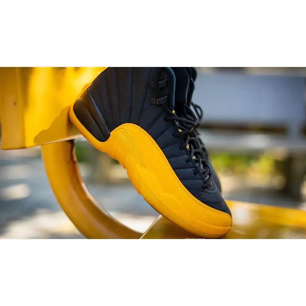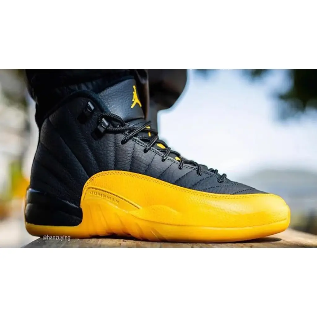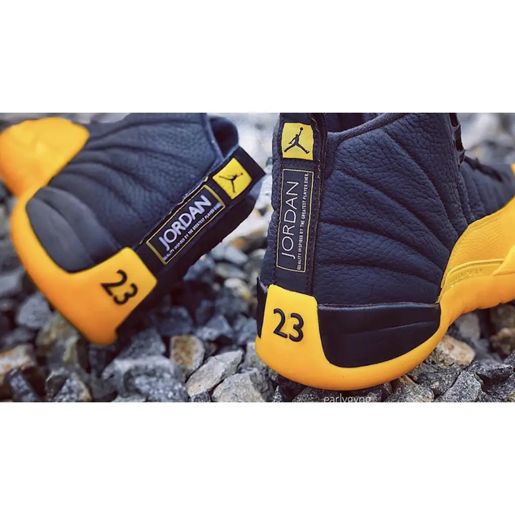 The Jordan 12 University Gold Black is a fresh new colorway of the legendary Jordan 12 silhouette that originally launched in 1996. Famously worn by Gary Payton whilst playing for the Los Angeles Lakers, the Jordan 12 was the first Air Jordan model from Jordan Brand to feature Zoom Air technology, and was a huge hit for basketball and sneaker fans both on and off the court.