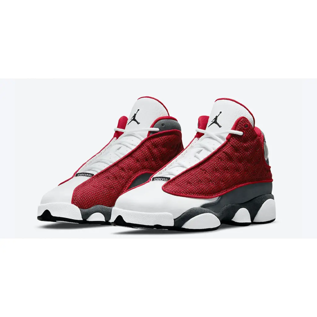 The midsole appears in a twooned grey and white hue which weaves in and out, giving these AJ13s a fun, fresh design. Grace your feet with some new heat with these Jordan 13 GS Grey Red White, but hit the bell icon above to ensure you don’t miss your chance to cop!