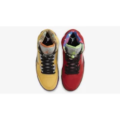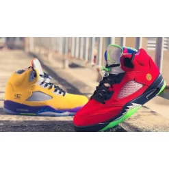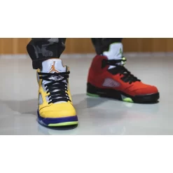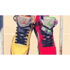 The Jordan 5 What The is the latest Air Jordan set to drop from Nike and Jordan Brand, and we’ve got a first look right here. The legendary Jordan 5 dropped for the first time in 1990 as Michael Jordan’s fifth signature Nike Air sneaker, and was designed by the one and only Tinker Hatfield. While Air Jordans have always been popular amongst basketball fans, the popularity of these specific basketball shoes has increased massively as of late due to high-end collaborations with those such as Virgil Abloh and of course the highly-coveted ESPN documentary The Last Dance (documenting Michael Jordan and the Chicago Bulls).