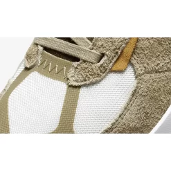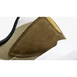 Nike’s Air Jordan 200E Khaki White style is a riff on texture. The white mesh upper comes printed with a khaki film to create a geometric motif. It’s overlaid with tonal suede panels that contour the shoes and are punctuated with perforation ports for breathability. The boldly moulded midsole sits on a translucent outsole and reveals glimpses of the cushioning Max Air unit, ensuring style and function go hand in hand. Jumpman embroidery sits on the lateral inner sides, while the heel panels are finished with 23E branding. Finally, the low-cut collar is traced with heaps of padding for a secure, comfortable fit.