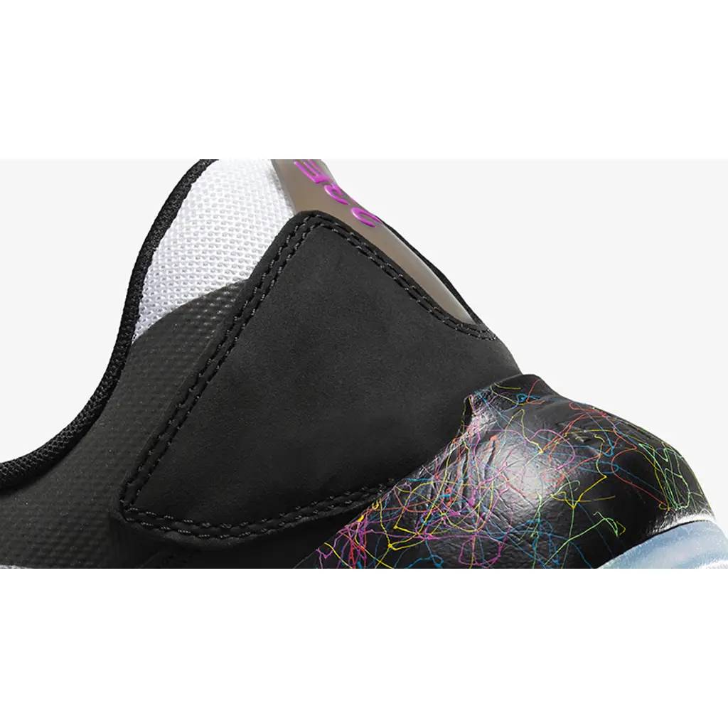 The minimalist look of the shoe is highlighted by pops of colour on the red Jumpman on the padded tongue, the yellow “23ENGINEERED” branding on the tongue pull tab and the light blue embroidered Jumpman on the medial heel. More colour surfaces on the midsole which is split between a plain white forefoot section and a black heel section showing off the coloured doodle designs of Zion’s brother, Noah, and an exposed Air unit at the heel covered with a transparent Volt-hued casing. An icy white rubber outsole completes the look of the sneaker.