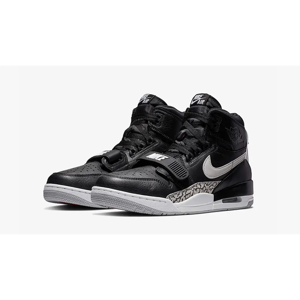 Ultra soft and premium leather covers the upper of the Jordan Legacy 312. This high-top boasts a certain level of refinement thanks to that luxurious material. It extends across everything in sight, even featuring to the sidewall Swoosh. The addition of a cement patterned overlay brings even more iconic appeal.