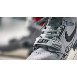 Pairing up a wolf grey and light graphite colour palette to emphasise the beloved elephant print that appears right above the midsole of the shoe, the Jordan Legacy 312 Wolf Grey Light Graphite Sail is a three way hybrid between the Jordan 1, Jordan 3, and Alpha Force Low. Crafted from a slew of premium materials, including luxe leather and supple suede, an Air bubble features in the midsole for added oomph with every step.