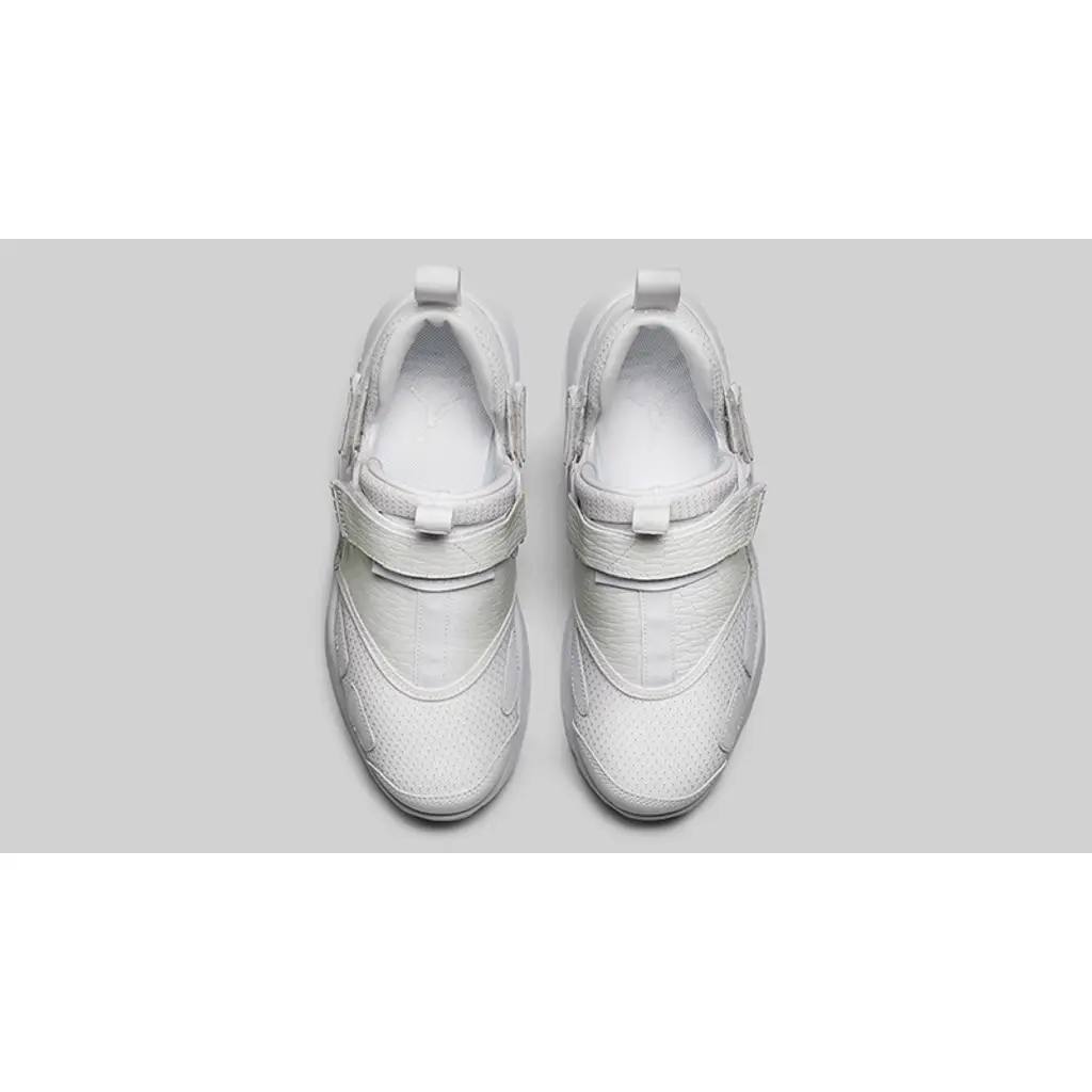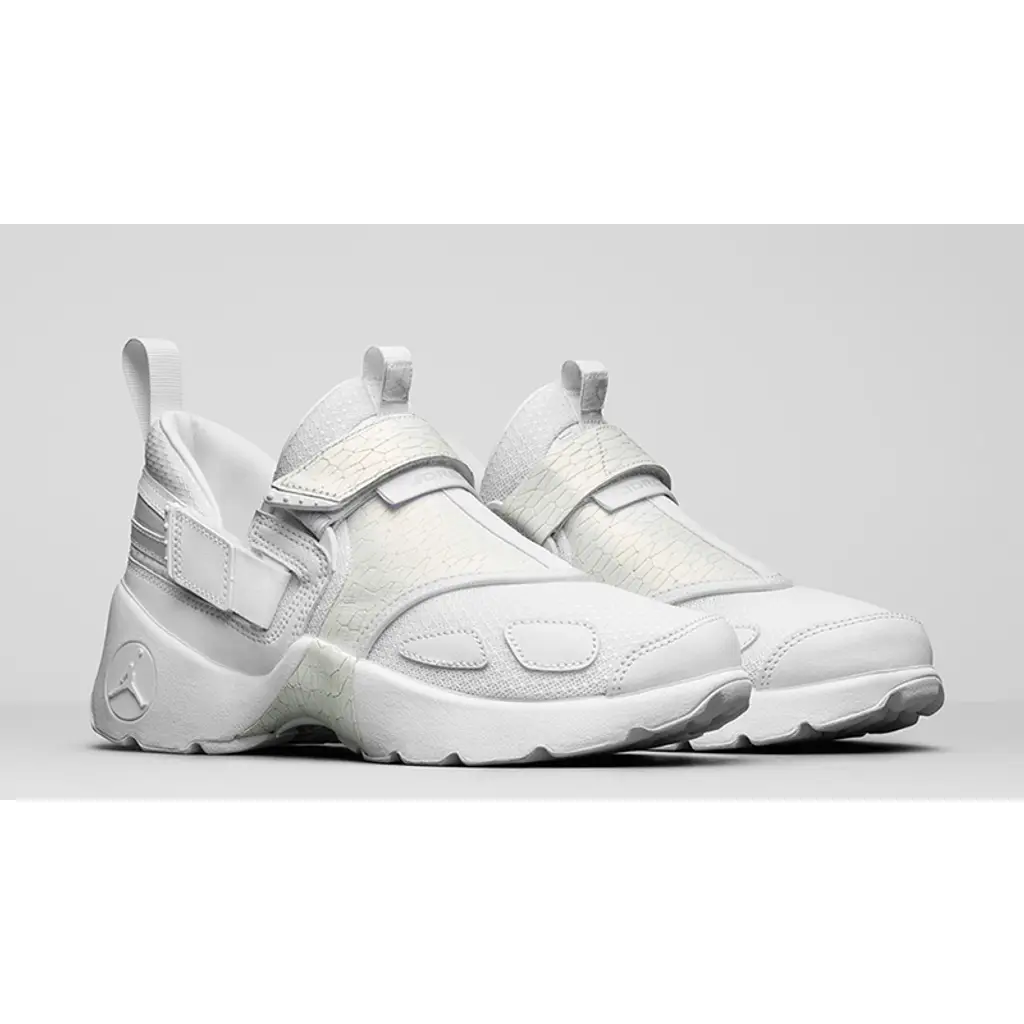 A base layer of premium white leather is complimented by cracked off-white leather overlays. These provide a nice contrast and instantly distinguish this as an exclusive. The sock link inner of the Jordan Trunner promises the best in comfort while chunky straps provides that secure and lock down fit.