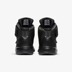 This edition of the Marxman is dressed in a triple black colourway. It includes a leather utilized upper with reptile-like pattern covering it in black. There is midfoot and ankle strap with no laces, the straps ensures a supportive fit. Swoosh branding in matching colourway is visible on the straps with more branding on the insole region. There is an injected unit sole for added comfort with a reflective logo on the back heel. A black midsole and a similar outsole complete the overall look.