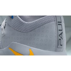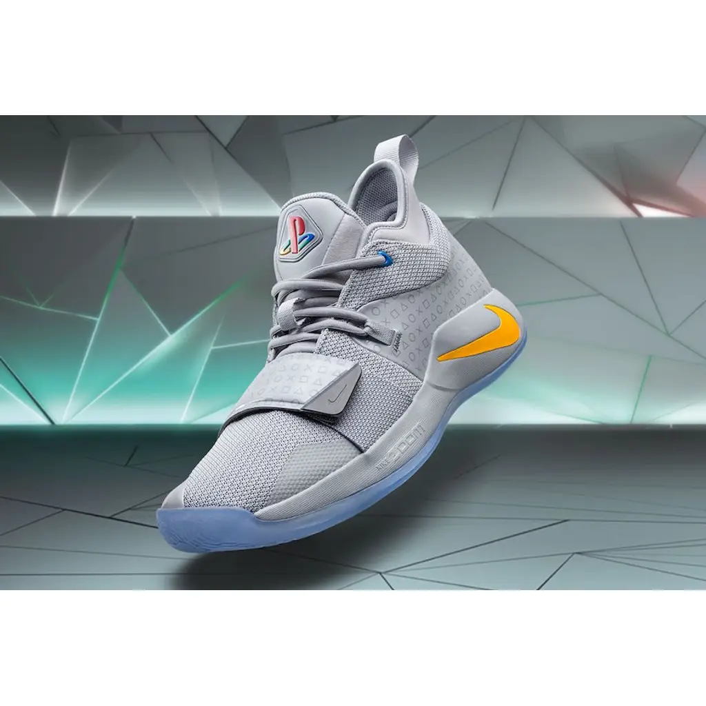 Paying homage to Sony’s first ever Playstation system, the Nike PG 2.5 Playstation is painted in a flat grey colour, reminiscent of the iconic games console. Standout features come by way of the PS1’s button colours, blue, green, red, and yellow taking shape on George’s branding, the model’s Nike checks, and an old school Playstation emblem on the left tongue. Familiar square, circle, triangle, and x graphics take shape all throughout this iteration via all-over patterns, while “Paul George” comes inscribed on both heels in Sony’s signature font.