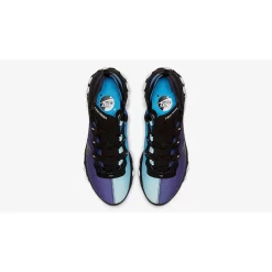 Taking on a starry night and bright blue day look, the two sided sneaker boasts a split appearance, one that’s not often seen in the sneaker scene. Both shoes show off a nighttime look on the outer side of the sneaker, in deep indigo hues and stars, while the inner half of the Night & Day React Element 55’s come with a sky blue gradient for the daytime.