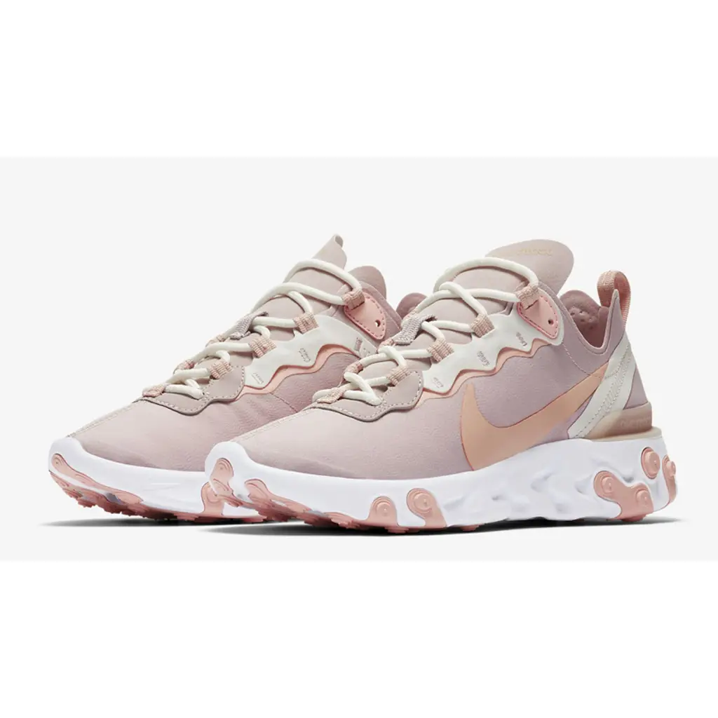 The brands signature React Foam midsole promises comfort like no other for a soft, cushioned landing with every step and rubber pods across the outsole for traction. A ‘Washed Coral’ Swoosh adds a touch of branding to the lateral sidewall with ‘nike react’ typed onto the tongue of this pink and white React Element 55.