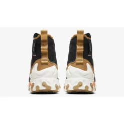 A leather panel dressed in an autumnal shade of brown features across the rear. This extends to the ankle where a dual layer construct features to the inner lining. The addition of a Nike React Element 55 midsole delivers even more comfort complete with sticky traction pods that keep you glued to all surfaces.