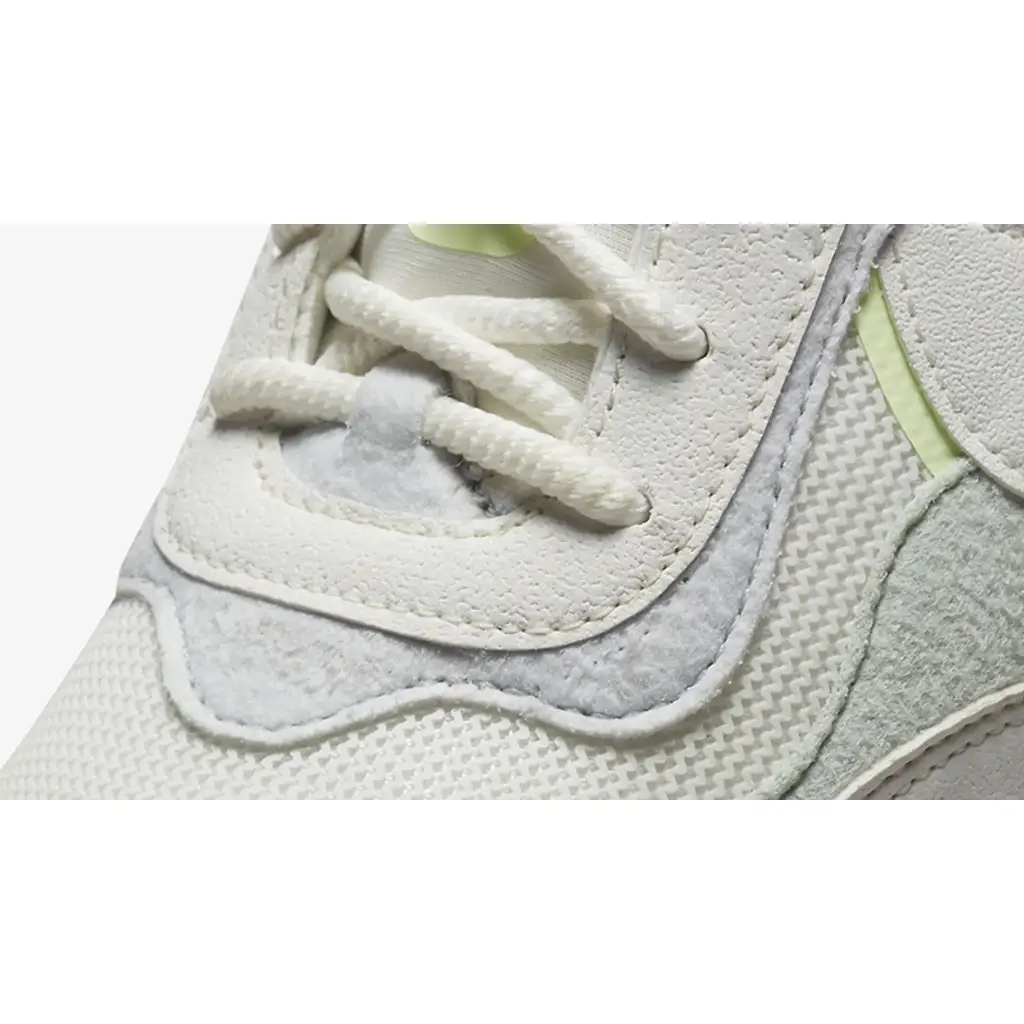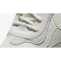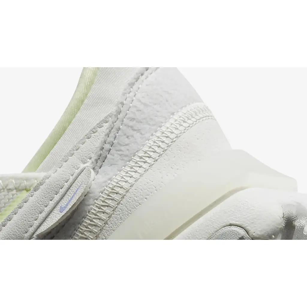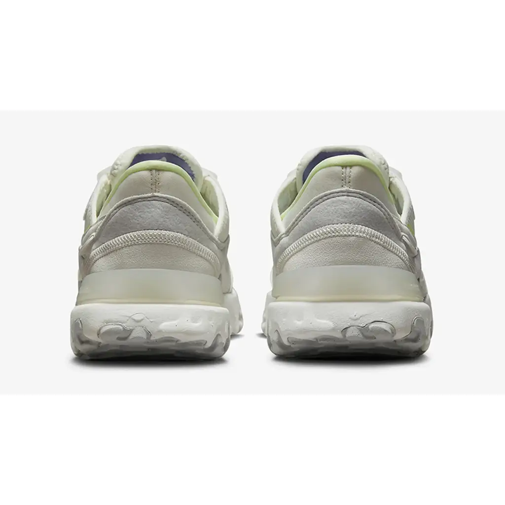This React Revision has an airy, breathable white mesh base complemented by synthetic leather and fleece-like overlays. The white profile Swooshes on both mid-panels stand out with pale yellow outlines that match the eye stay accents, the Nike branding on the white insole and the plush low-cut collar lining. Milky semi-translucent heel clips at the rear provide the wearer extra stability. The chunky, textured White and Photon Dust-coloured sole unit features Nike’s React cushioning technology and wraps up the design of these kicks.