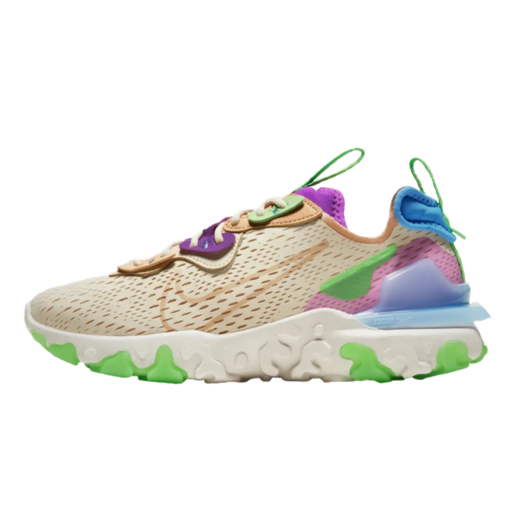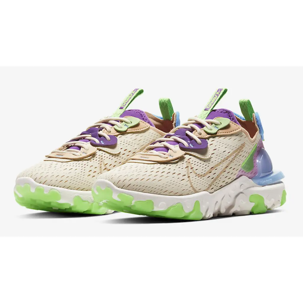 Make a statement this season with the Nike React Vision Beige Purple. A high-voltage design with endless styling potential, these sneaker looks to bright colours, breathable fabrics and abstract design accents to bring you a shoe that’s unlike any other in your collection. Easier to wear than you might think and so versatile you can wear it on your run then to brunch straight after, this sneak belongs in your collection.