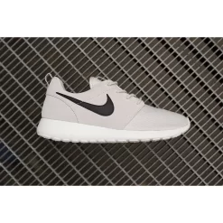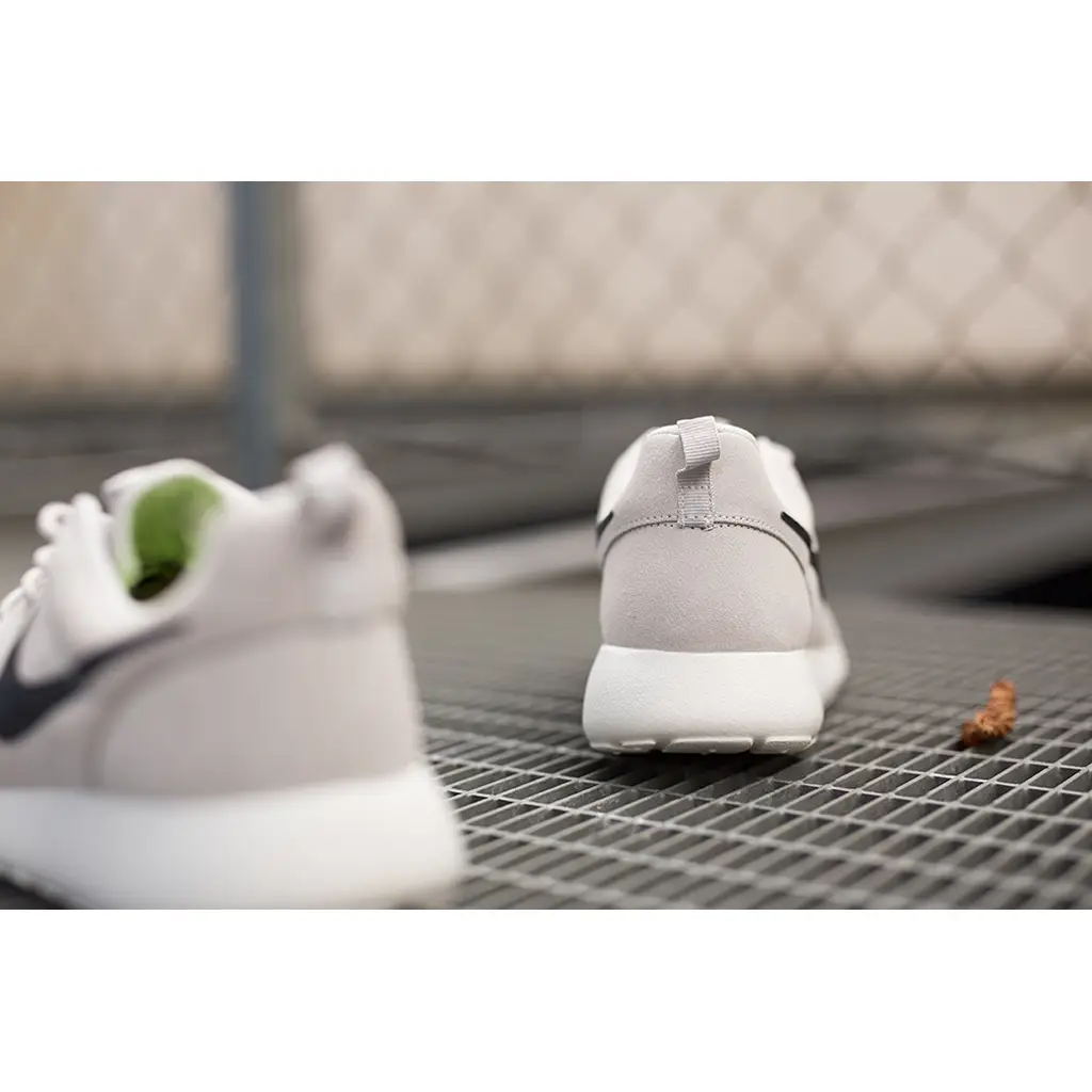 This pair of Nike Roshe Run Suede is designed using a highly comfortable cushioned mid-sole. It features a grey premium upper for running inspired comfort and style. This shoe is adaptable, it can be worn with or without socks, for walking or just taking it easy. The shoe is completed with a white rubber out-sole with a waffle inspired plan for traction and durability.