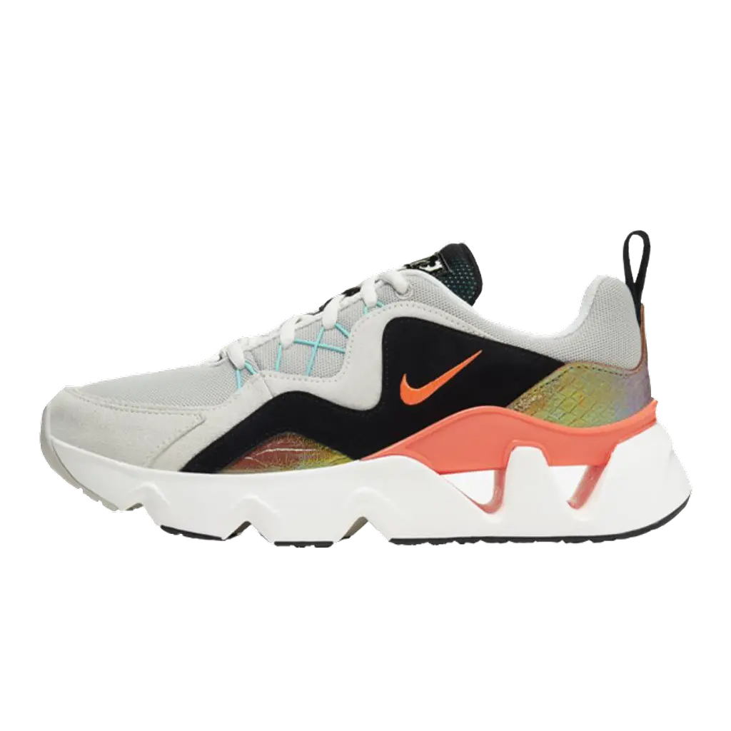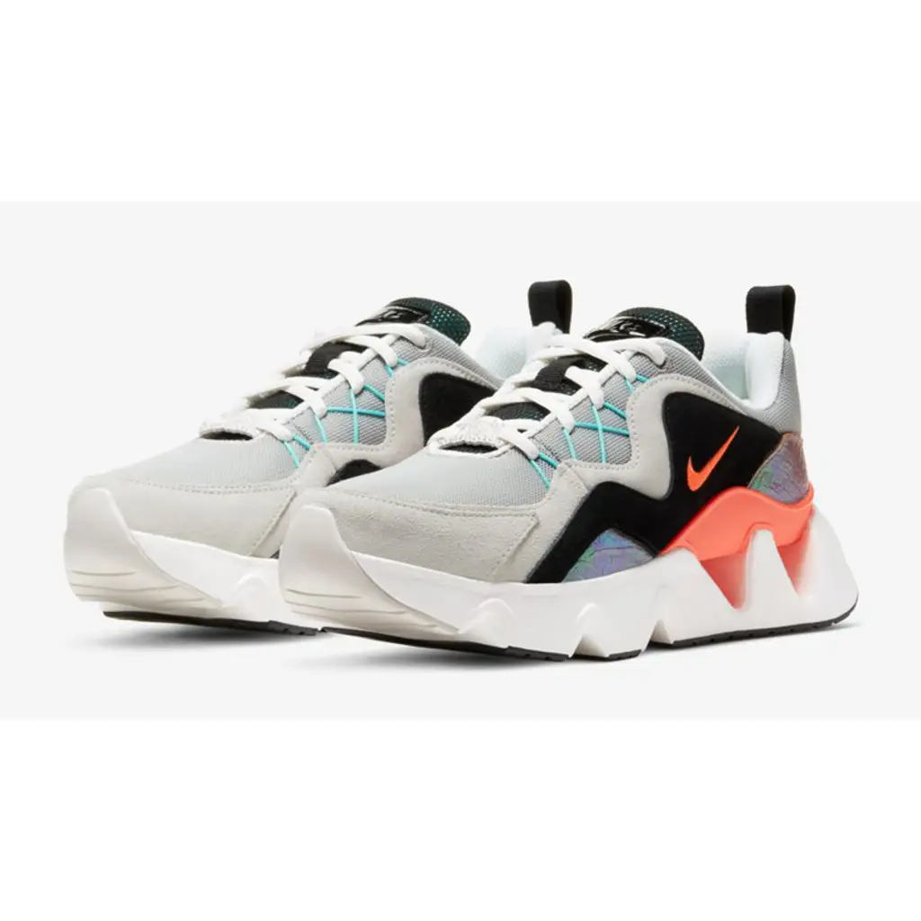 Take your sneaker game to the next level and cop this statement looking sneaker, with it’s cut out midsole that’s reminiscent of the ZoomX Vista Grind. The iridescent panels are even more eye-catching than the chunky midsole, changing colour in the light from bright orange to yellow and creating a rainbow effect wrapped around the heel and side of the shoe.
