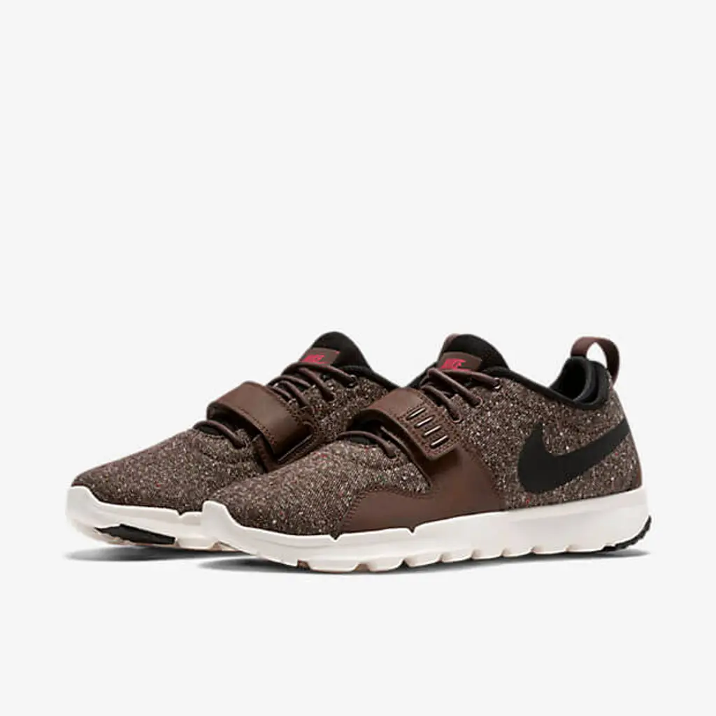 This edition of the Trainerendor is dressed in a baroque brown, black, ivory and bright crimson colourway. It features a baroque brown upper and there is matching hits of brown suede overlays on the toe and heel region. The pair also includes the classic velcro strap across the lace up and comes with a pair of matching round laces and heel pull. There is dark swoosh branding on the sides with Nike SB brand tab in bright crimson on the tongue. The shoe is finished off with a white sole unit.