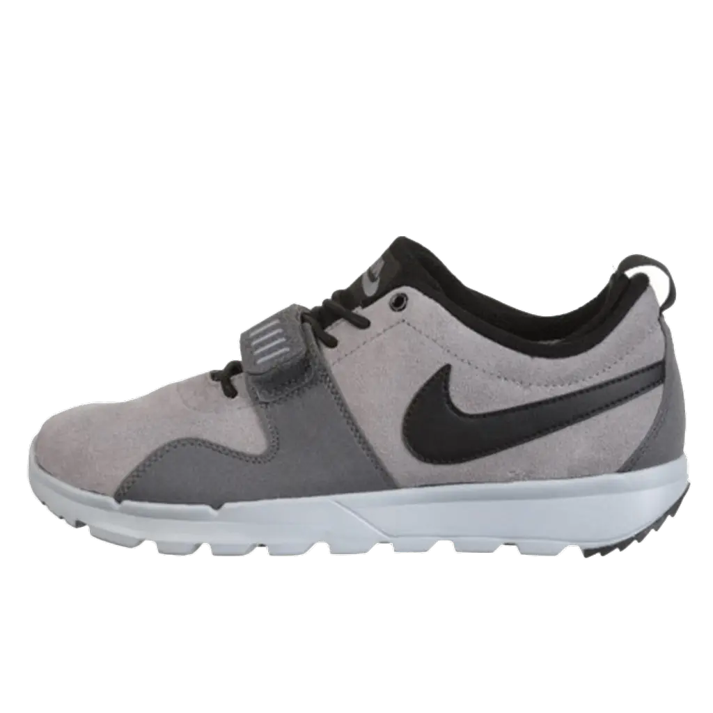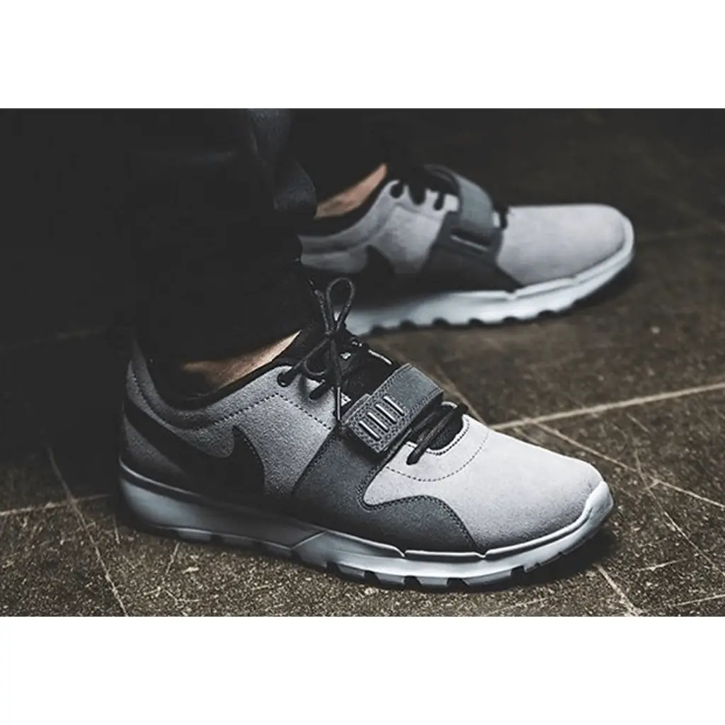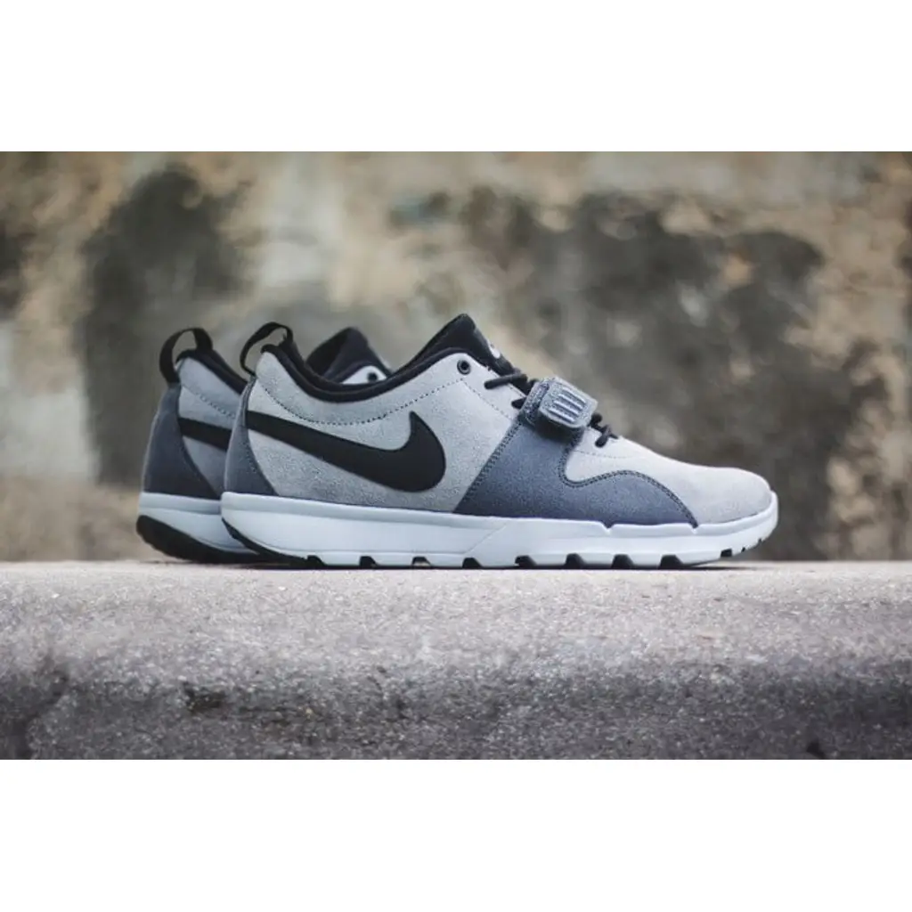 This clean looking pair of Nike SB Trainerendor features a cool grey suede based upper and is crafted from a neoprene sleeve, encased inside the weaved upper. It features dark grey overlays with a mid-foot strap in a matching colourway for a custom fit. This light-weight, versatile shoe ensures superior comfort and there are contrasting black swoosh logos on the sidewalls with additional branding on the tongue. The shoes come with matching laces and is finished off with a clean white midsole and a dark outsole unit.