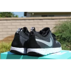 The shoe’s upper is crafted from a mesh material which provides ventilation to the foot and offers an ultra snug fit. Neoprene is utilised for an under layer which gives the shoe its distinctive shape and provides support. This redesigned low top also includes a suede overlay to the heel, a strong midfoot strap and a camo print heel pull tab. The pair sit on top of a white speckled midsole and has metallic detailing to the Swoosh and branding. The latter also features reflective material which gives the shoe a nice sheen and keeps your safe on those late night runs.
