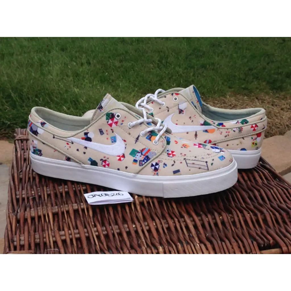This cool pair is crafted with a canvas upper with a beach scene print overlay against a sand background. Complimenting this idyllic print is tonal piping and stitching, an iconic swoosh in a clean embroidered white and a crisp white midsole. Rope laces and the Janoski logo to the tongue finish this pair off nicely. These sneakers pay homage to that chilled summer vibe we all love and we’re excited to see what you guys think.