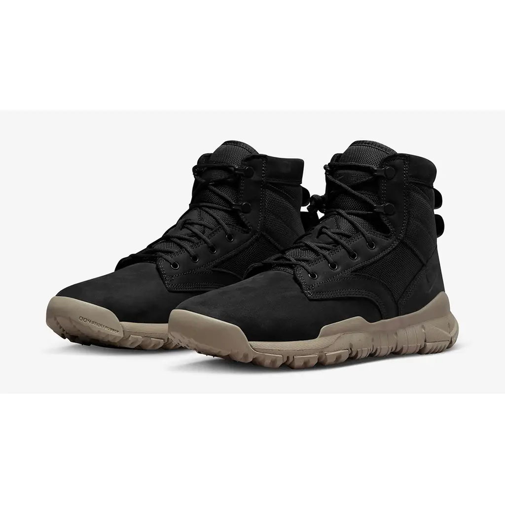 As the temperature continues to drop, Nike brings back its Special Field Boot in basic black with a touch of neutral taupe. Take a closer look at the Nike SFB Leather Black. This mid-cut military-inspired boot has a durable black canvas underlay showing on mid-panel and collar. The rest of this SFB is covered in weather-resistant black nubuck that’s built to withstand rain and snow. Branding is subtle, coming in the form of debossed mini Swooshes on the lateral heel panels and black-on-black branding on the tongues. The neutral-toned Light Taupe sole unit is made with sticky, high-traction rubber that will keep the wearer from slipping on sleet-covered surfaces.
