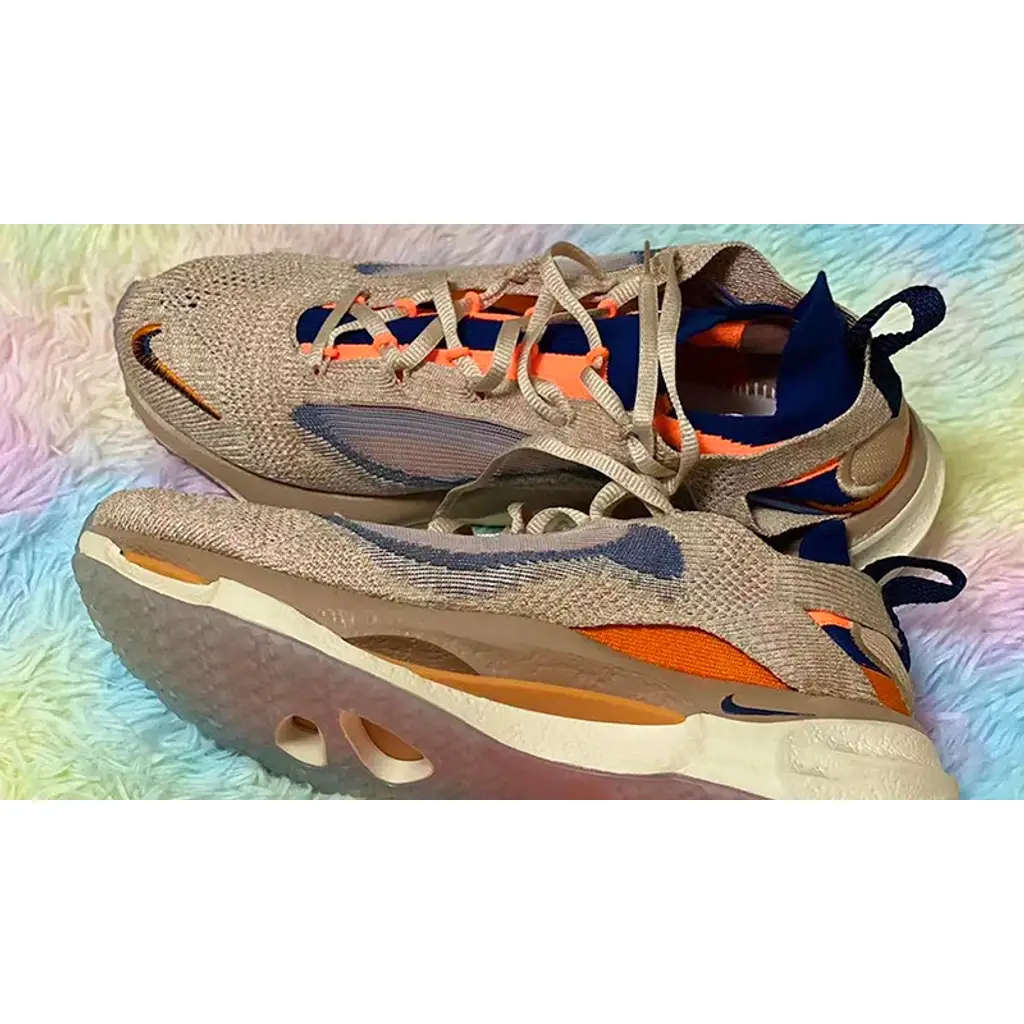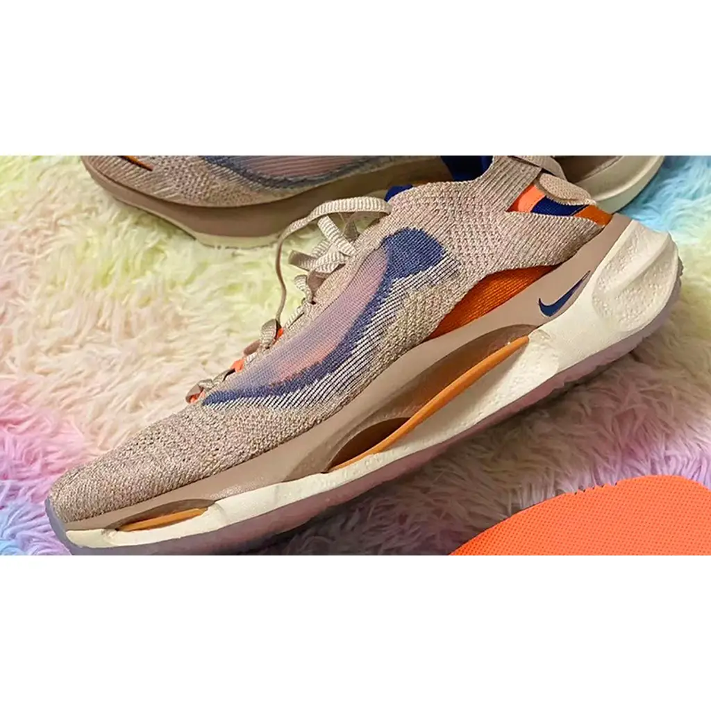Running in style has never been easier with the Nike Spark Flyknit 1 Brown! The intriguing new silhouette showcases a dual-layered Flyknit upper that features a solid orange and blue base and a durable perforated tan knit material overlaid on top.