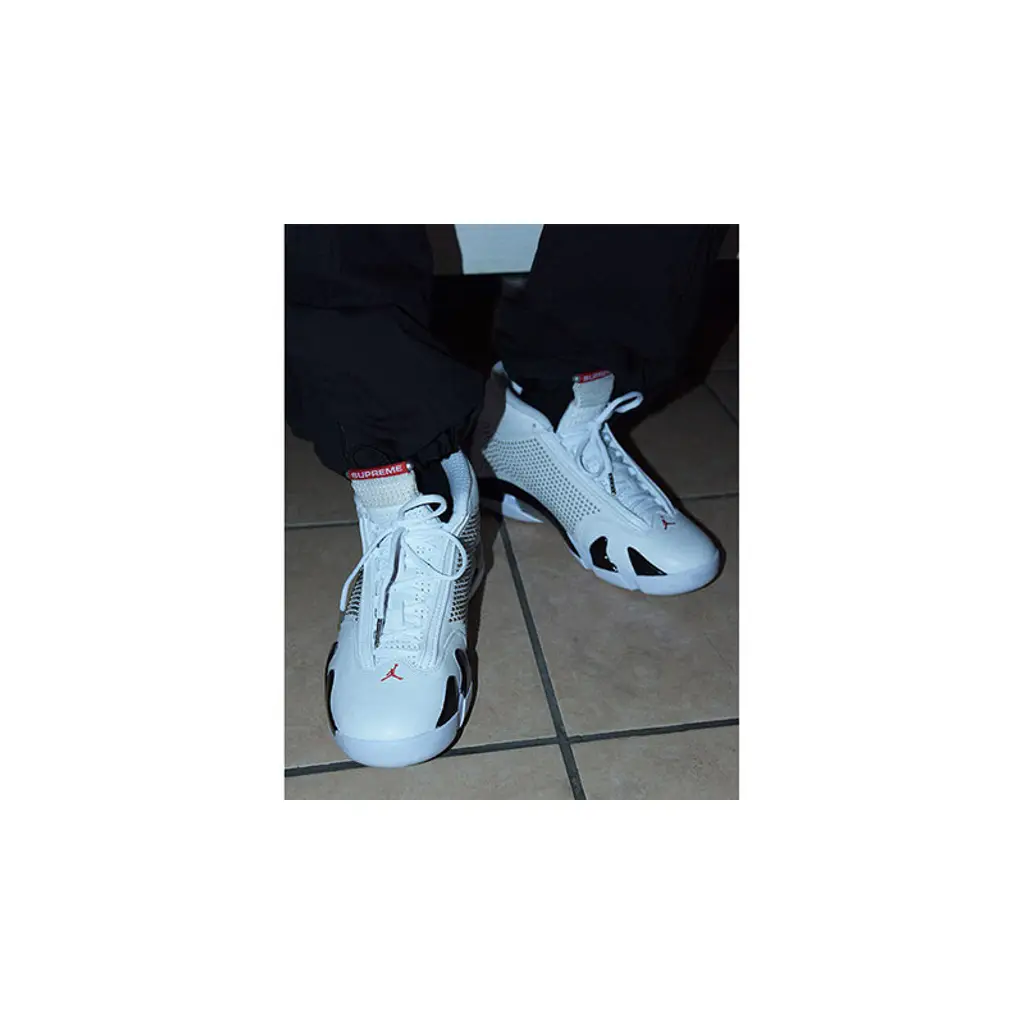 One of their most unique collabs to date, if you are on the look out for your next hyped sneaker cop, look no further than the upcoming Supreme x Air Jordan 14 White! A must cop for any sneaker rotation, we recommend that you go true to size for the perfect fit!