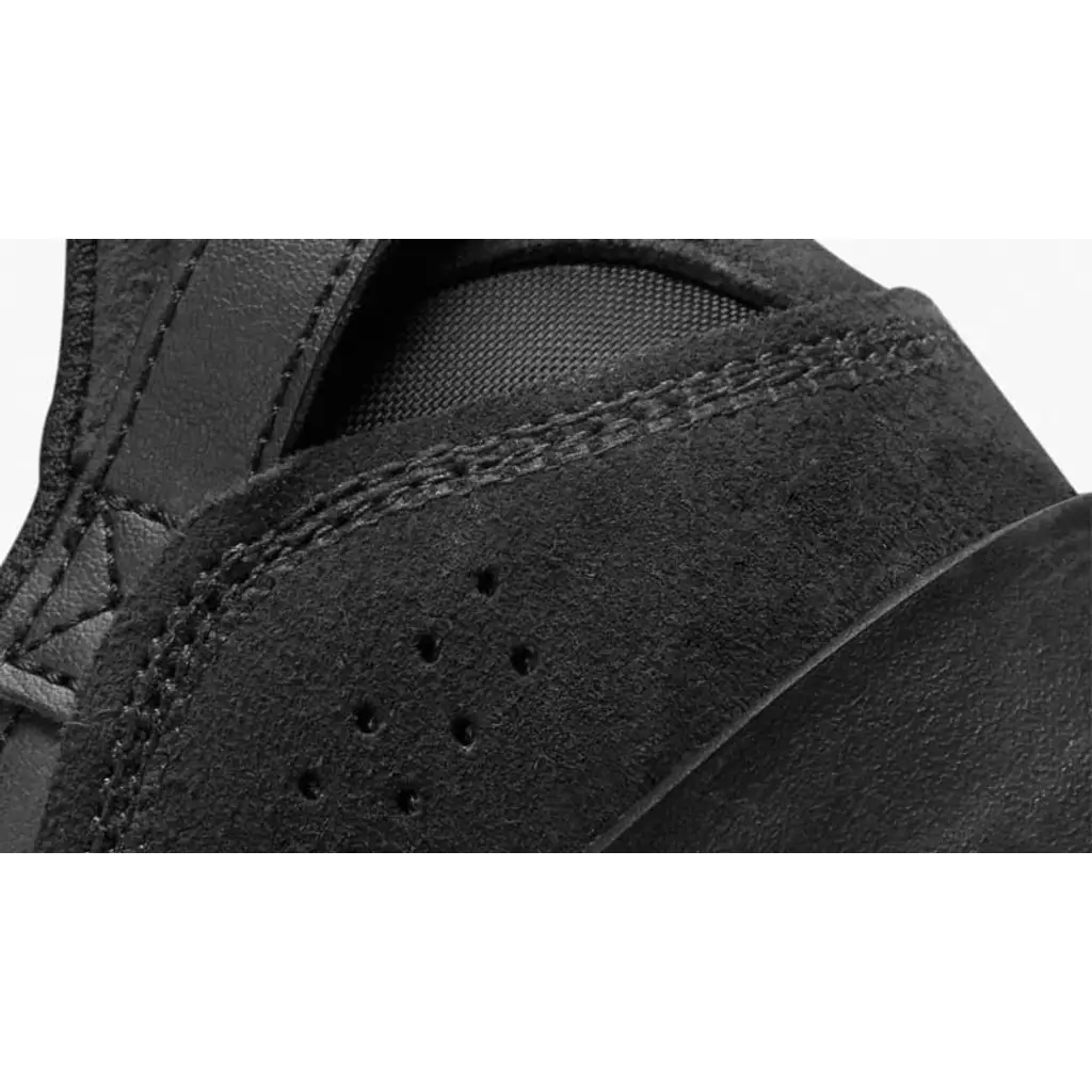 This Waffle Debut has a black nylon base on the toe box and mid-panels. The eye stay panel is smooth leather while the toe box, the mudguard and the heel counter are all black suede. The black smooth leather signature profile Swooshes wrap around the mid-panels and meet at the rear to form a pull tab. Black padded mesh tongues match the black mesh sock liner. A black wedge-shaped midsole and a high-traction black studded outsole round out the look of this shoe.