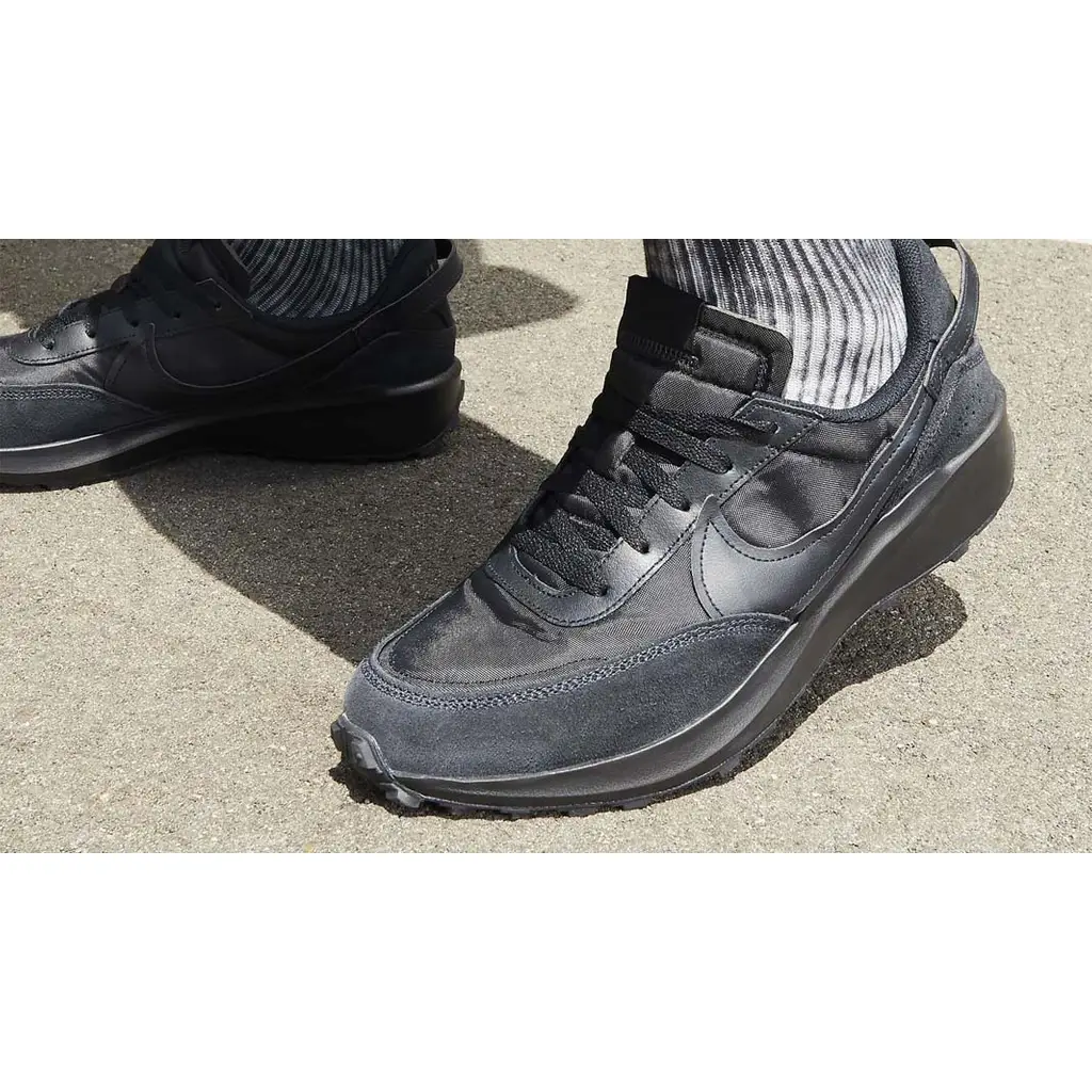Nike’s high traction Waffle with a modernised retro look inspired by the Nike Daybreak, the Waffle Debut, has a new stealth mode offering. Meet the Nike Waffle Debut Triple Black.