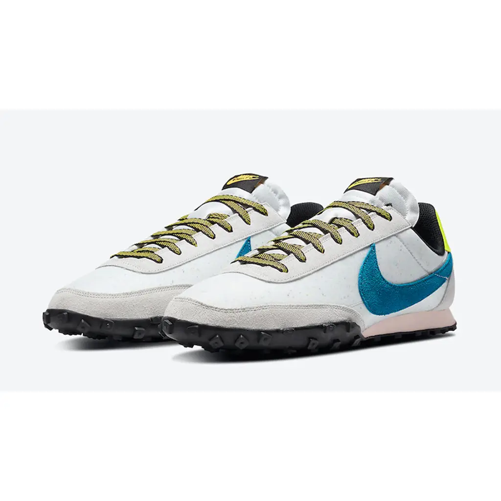 The Nike Waffle Racer Green Abyss is a fresh new colorway of one of the oldest Nike silhouettes in existence. All these years later, and it still manages to look on trend! The Waffle Racer was an early Nike prototype developed by co-founder Bill Bowerman. Bowerman designed the waffle sole by using his wife’s waffle iron in his garage, single-handedly creating one of the most innovative designs in footwear history.
