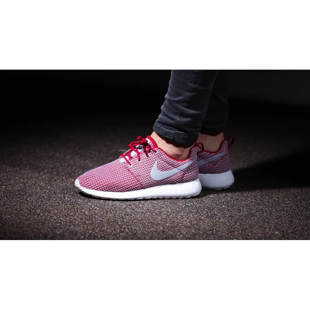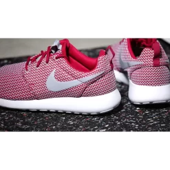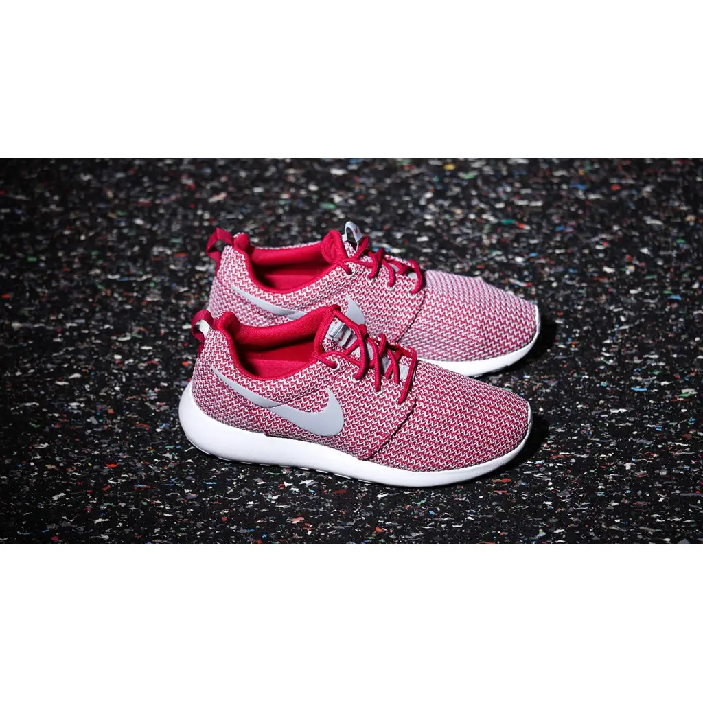 These awesome pair feature an eye-catching upper, which is crafted with the common synthetic mesh used on most Roshe Runs. But unlike the previous editions, the upper of this piece has knitted aesthetic with waves of Fireberry and Wolf Grey combined together. The whole design is contrasted by a thick White mid-sole while. The shoe is finished with a Wolf Grey Swoosh logo, Fireberry lace and inner lining.