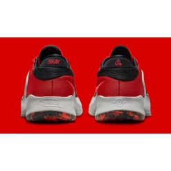 Famed basketball player Giannis Antetokounmpo’s signature silhouette with Nike is getting a bold makeover. Meet the Nike Zoom Freak 4 University Red! This comfy and stylish low-top pair starts with a stretchy grey knit base that’s embellished with breathable fabric mesh overlays in “University Red”.