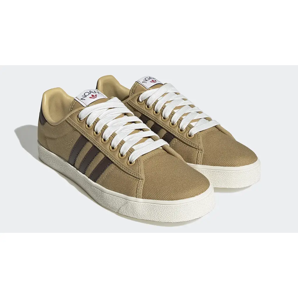 Crafted from durable canvas, the uppers are decked out in a golden brown hue and show off adidas’ signature three stripe branding in supple leather across the laterals and medials. Trefoil motifs reside on the leather heel tabs, while NOAH’s recognisable core logo is stitched onto the tongue tabs, pointing to the collaborative nature of this release.